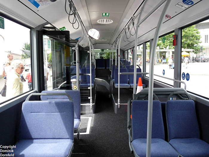 Das linke Foto von Oliver Wiggenhauser zeigt den Wagen FN-SV 2030 am 26.06.2009 am Hafenbahnhof. Auf den beiden Bildern von Dominik Dornfeld sind die Neuwagen auf dem Betriebshof sowie der Innenraum eines der Fahrzeuge zu sehen.