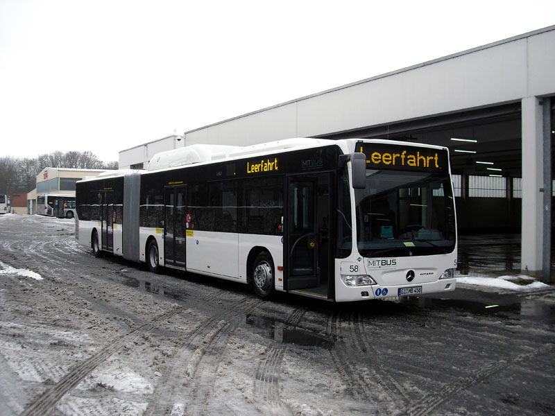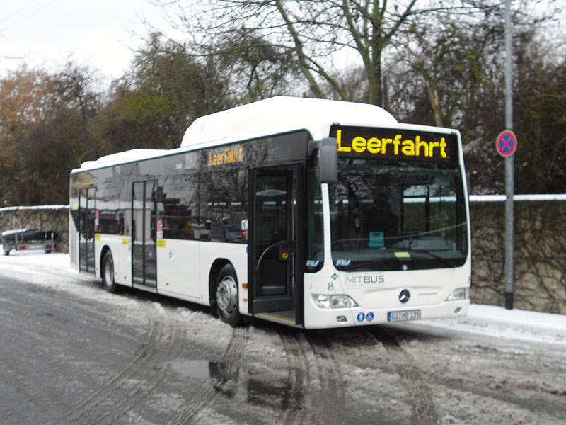 Wie bereits am 14.12.2009 gemeldet, hat die MIT.BUS GmbH aus Gießen im Dezember ihre Neuwagen in Betrieb genommen. Die Ausstattung der drei EvoBus MB O 530 CNG (Wagen 8, 38, 40) und drei EvoBus MB O 530 G CNG (Citaro) (Wagen 58 bis 60) ist mit den Fahrzeugen der Vorjahre identisch. Somit sind jetzt 23 Erdgasbusse im Fuhrpark der MIT.BUS.