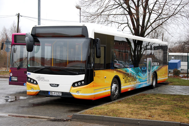 Die Regionalverkehr Köln GmbH (RVK) testet zur Zeit einen Niederflurbus des niederländischen Herstellers VDL vom Typ Citea SLF-120. Stationiert ist der Wagen mit dem amtlichen Kennzeichen PB-X 1357 auf dem Betriebshof in Meckenheim (bei Bonn). Das Foto von Christian Marquordt zeigt das Fahrzeug am 15.02.2012 auf dem Gelände der Niederlassung Meckenheim.