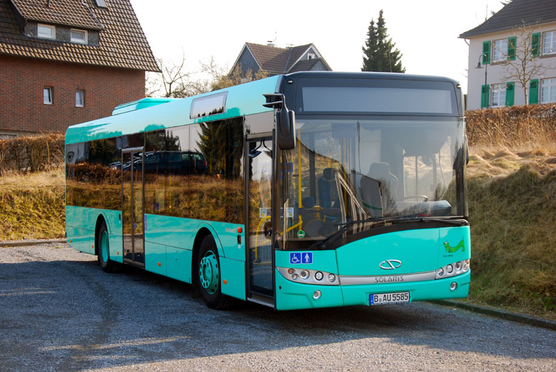 Nach dem Volvo 7700 Hybrid zur Jahreswende und dem VDL Citea SLF-120/310 war Mitte März ein weiterer Vorführwagen bei der Regionalverkehr Köln GmbH (RVK). Es handelt sich um einen türkisfarbenen Solaris Urbino 12 LE mit dem amtlichen Kennzeichen B-AU 5585. Das Foto von Christian Marquordt zeigt den Wagen am 16.03.2012 auf dem Betriebshof in Wermelskirchen.