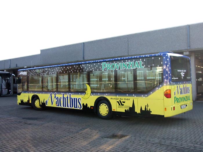 Das Unternehmen Schäpers Reisen in Nordwalde hat Anfang des Jahres einen EvoBus MB O 530 (Citaro) in Dienst gestellt. Der Citaro ist im Liniendienst für die WB Westfalen Bus GmbH, Münster unterwegs. Er ist abweichend vom Design des Schäpers-Busse im Design der Nachtbusse der WB Westfalen Bus GmbH lackiert. Die für Nachtbusse ungewöhnlich helle, gelbe Lackierung fungiert als Sicherheitsplus auf dunklen Straßen. Der Citaro verkehrt auf der Nachtbuslinie N5 Münster - Altenberge - Burgsteinfurt.
