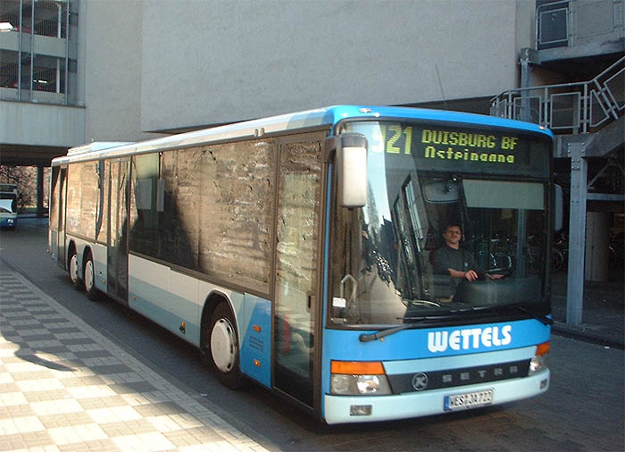 Das Busunternehmen Wettels aus dem niederrheinischen Rheinberg hat einen gebraucht übernommenen Setra S 319 NF in Dienst gestellt und auf das Kennzeichen WES-JA 722 zugelassen. Das am 30.12.1998 erstzugelassene Fahrzeug war zuvor bei den Stadtwerken Münster als Wagen 9861 mit der Zulassung MS-ST 555 im Einsatz und wurde im März 2002 an den Händler Boeckels in Willich bzw. Schermbeck verkauft.