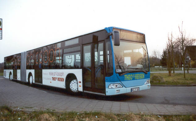 Aufgrund langanhaltender technischer Probleme hat die Fa. Theo's Reisen ihren EvoBus MB O 530 G (Citaro) an die Herstellerfirma zurückgegeben. Das am 22.09.2000 auf MS-JT 180 zugelassene und mit der Funknummer 5396 im Auftrag der Stadtwerke Münster verkehrende Fahrzeug war letztmalig am 26.03.2003 im Einsatz, als es wieder einmal mit einem technischen Defekt ausgewechselt werden musste.