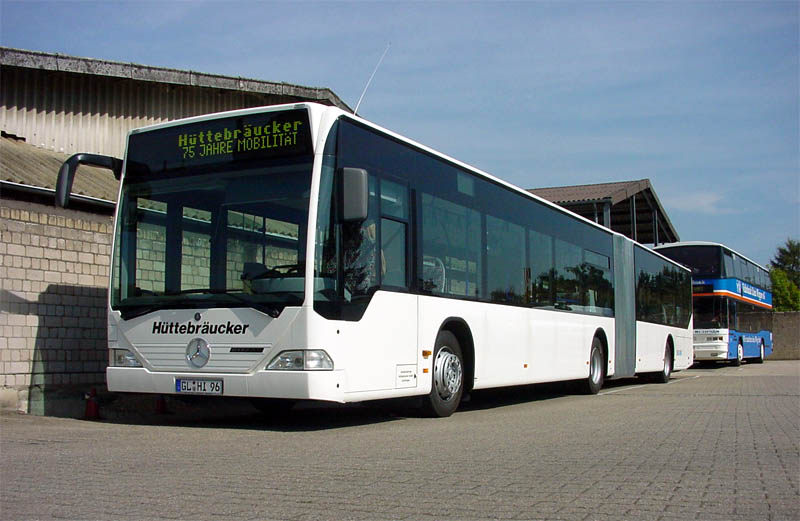 Am 04.09.2003 wurde im Werk Mannheim ein EvoBus MB O 530 G (Citaro) übernommen. Der erste Gelenkomnibus der Firma Hüttebräucker nahm am 15.09.2003 seinen ersten Dienst auf und ist seit dem auf den Linien 251 und 253 (Raum Leichlingen/Leverkusen) im Einsatz. Das Fahrzeug weist zwei Besonderheiten auf: Der Vorderwagen hat zwischen Tür 1 und 2 ausschließlich sog. Mutter-Kind-Sitze (1,5-Sitze), sodass z.B. ein Kinderwagen oder Rollstuhl von Tür 1 bis Tür 2 durchrollen kann. Ferner ist das Fahrzeug mit einem Fahrerplatzmonitor zur Überwachung des toten Winkels an Tür 3 bei eingeknicktem Nachläufer ausgestattet. Der Fahrer kann wahlweise mit zwei Kameras den Innen- sowie Aussenbereich an Tür 3 beobachten.