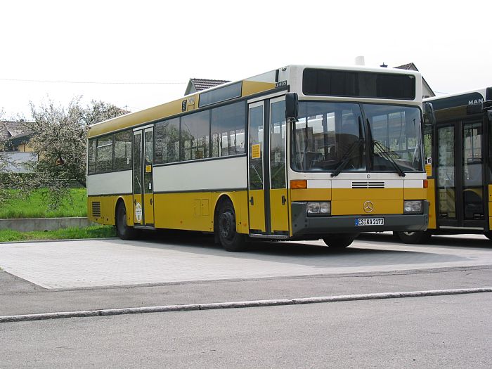 Die Firma Aichtal-Reisen Dieter Melchinger hat als Reservewagen für die SSB-Linie 36 einen O 405 der Stuttgarter Straßenbahnen AG (SSB) übernommen. Bei dem am 25.04.2002 auf ES-KA 2173 zugelassenen Wagen handelt es sich um den ex SSB 5031 (S-KC 5031, EZ 14.11.1988).