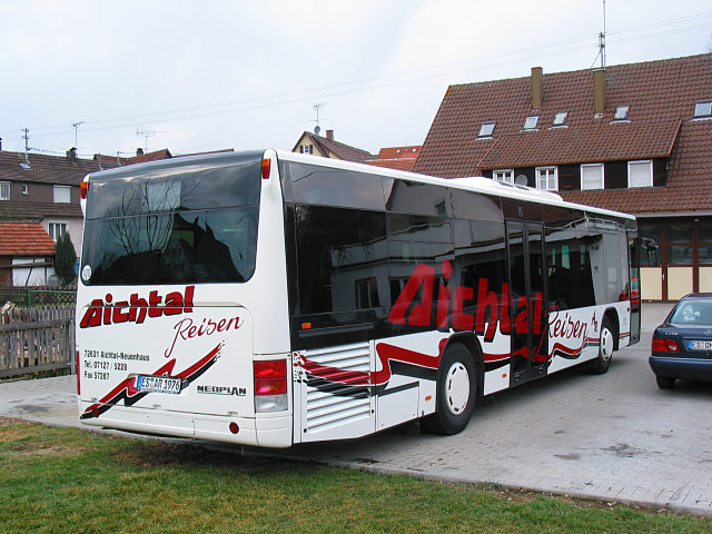 Die Firma Aichtal-Reisen Dieter Melchinger aus Aichtal-Neuenhaus hat am 14.01.2004 einen Neoplan N 4416 Ü (Centroliner) übernommen und auf das Kennzeichen ES-AR 1976 zugelassen. Das im April 2003 erstzugelassene Fahrzeug war im November 2003 unter DGF-D 749 als Vorführwagen bereits schon einmal im Aichtal und wurde anschließend übernommen.
