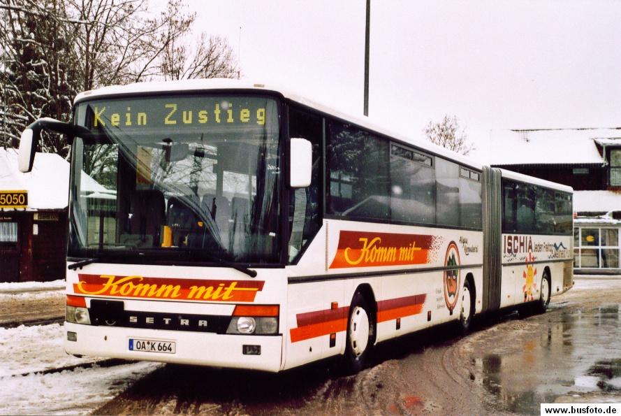 Beim Omnibusbetrieb "Komm mit" gab es in den letzten Jahren eine große Zahl an Neuzugängen. Neben wenigen Gebrauchtfahrzeugen kamen auch einige neue Busse dazu, so unter anderem folgende fünf Fahrzeuge: ein Setra S 317 UL-GT, Baujahr 2003 (OA-KM 40, Wg-Nr. 12), ein EvoBus MB O 550 M (Integro), ebenfalls Baujahr 2003 (OA-K 609, Wg-Nr. 19), ein Gelenkbus vom Typ Setra SG 321 UL, Baujahr 2002 (OA-K 664, Wg-Nr. 27) und ein Setra S 319 NF vom Baujahr 2003 (OA-K 636, Wg-Nr. 42). Das fünfte dieser Neuahrzeuge ist in erster Linie für den Schülerverkehr bestimmt: ein EvoBus MB O 520 (Cito) mit 16 Sitzplätzen, Baujahr 2003 (OA-K 647, Wg-Nr. 71). Und zur Freude vieler Omnibusfans ist zu melden, dass einer der beiden allradangetriebenen Daimler-Omnibusse (LAO 328) vom Baujahr 1963 noch weiterhin bei "Komm mit" im Einsatz ist (OA-K 849).