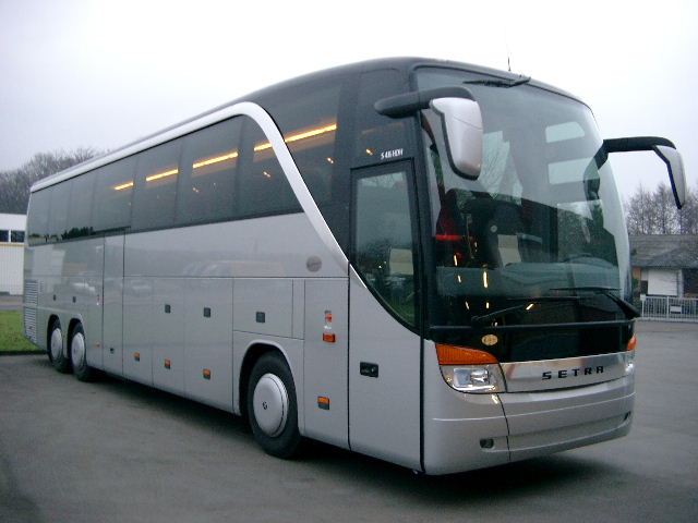Bei der Firma Wiebusch-Reisen aus Bad Salzuflen ist gerade ein neuer Reisebus, ein S 416 HDH eingetroffen. Besonders an dem Bus ist, dass er, passend zum 77. Firmenjubiläum, der 77. Bus aus der exklusiven und limitierten Otto Kässbohrer Edition ist. Der Bus verfügt über einen zweifarbigen Nappa-Leder Fahrer- und Beifahrersitz, eine Einparkhilfe mit optischer Anzeige in den Rückspiegeln, ESP, einen besonderen Bordcomputer, ein Navigationssystem mit Flachscreen-Bildschirmen und DVD-Videoanlage. Selbstverständlich hat der Reisebus eine 4-Sterne Ausstattung mit 50 Sitzplätzen Typ "Ambiente" mit Lederkopfteil, 2 Kühltruhen, Top-Air-Klimaanlage etc. Angetrieben wird der S 416 HDH von einem V8-Triebwerk mit 435 PS. Der Reisebus soll erst im März/April zur neuen Reisesaison angemeldet werden, die linke Aufnahme zeigt den Wagen entsprechend noch ohne Kennzeichen.