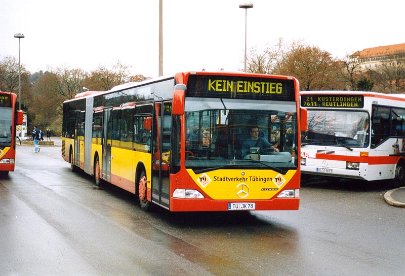 Das Foto zeigt den neuen Citaro-Gelenkbus mit dem Kennzeichen TÜ-JK 78 am 03.12.2004 am Tübinger Hauptbahnhof.