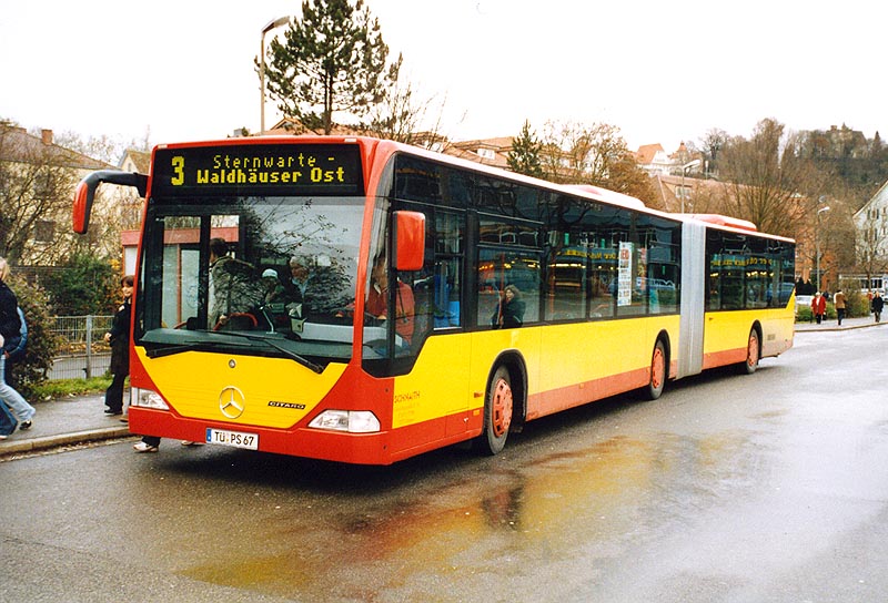 Die am 03.12.2004 am Tübinger Hauptbahnhof aufgenommenen Fotos zeigen die neuen Citaros mit den Kennzeichen TÜ-PS 95 und TÜ-PS 67.