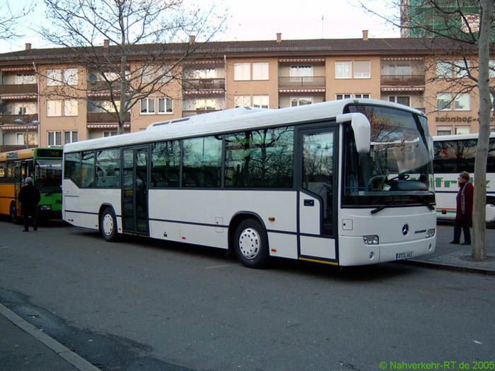 Bereits Anfang Januar 2005 hat die Firma Lutz einen EvoBus MB O 345 H (Conecto) in Betrieb genommen. Der auf das Kennzeichen RT-L 661 zugelassene Wagen verfügt über eine Klimaanlage sowie Tempo 100-Zulassung. Die Aufnahme zeigt das noch nicht mit dem Unternehmensschriftzug beklebte Fahrzeug am 13.01.2005 am Reutlinger Regionalbusbahnhof.