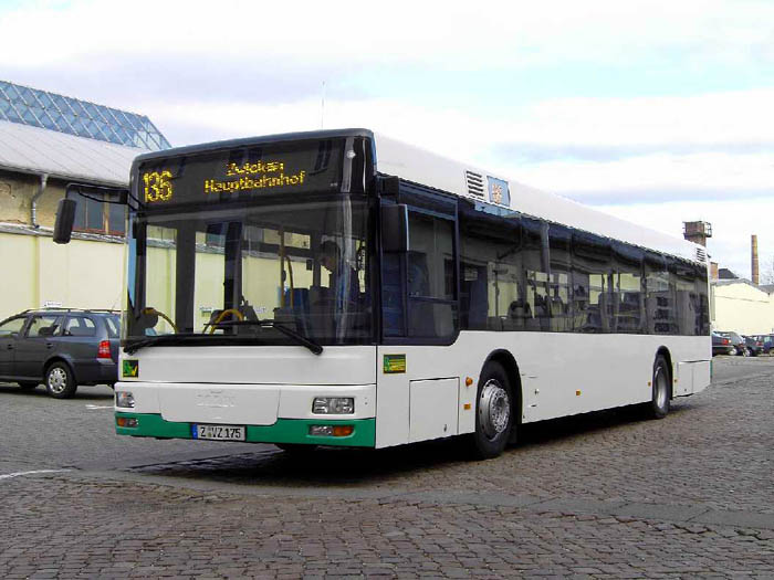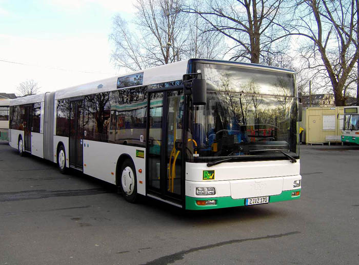 Die RVW in Zwickau - die seit dem 01.04.2003 zur Mainzer Rhenus Keolis-Gruppe gehört - erhielt kurz vor dem Jahreswechsel ihre ersten Niederflurfahrzeuge überhaupt. Im einzelnen handelt es sich um vier MAN A21 (Z-VZ 172 bis Z-VZ 175) und zwei MAN A23 (Z-VZ 170 und Z-VZ 171). Sie tragen eine etwas vereinfachte Lackierungsvariante. Die Fotos von Markus Neidhardt zeigen den Z-VZ 170 kurz vor seinem ersten Linieneinsatz und den Z-VZ 175.