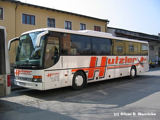 Ergänzend zur Meldung vom 19.03.2004 seien an dieser Stelle noch zwei Aufnahmen des neuen Setra S 315 UL-GT der Firma Hutzler in Aicha gezeigt. Die Bilder des auf das Kennzeichen PA-TT 72 zugelassenen Fahrzeugs entstanden am 24.03.2005.
