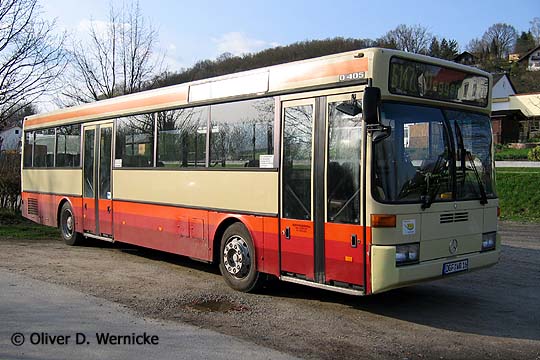 Wie bereits am 17.03.2005 gemeldet, hat die Firma Reicheneder in Wallersdorf einen Mercedes-Benz O 405 beschafft. Das Bild zeigt das im Jahre 1989 erstzugelassene Fahrzeug mit dem Kennzeichen DGF-WR 16.