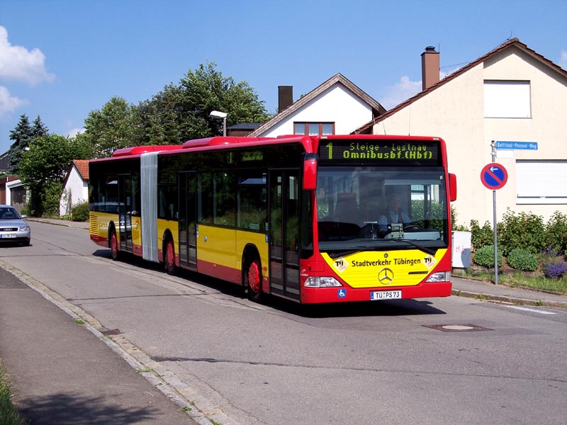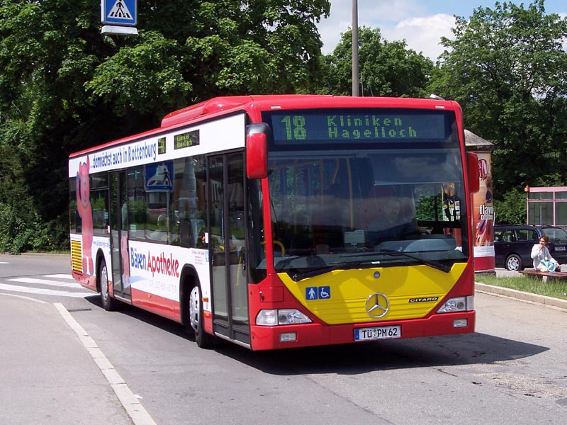 und auf das Kennzeichen TÜ-PM 62 zugelassen. Der mit einer Überlandfront ausgestattete Citaro trägt die Lackierung des Tübinger Stadtverkehrs und kommt auf der Linie 18 (Tübingen-Hagelloch - Rottenburg - Poltringen) zum Einsatz, die gemeinsam von der Groß Reisen und der Stadtverkehr Tübingen GmbH betrieben wird.