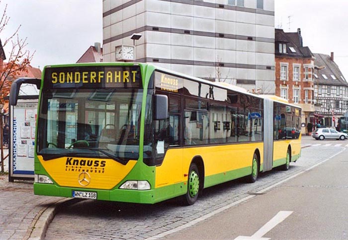 Bei Knauss Linienbusse gibt es seit dem 14.05.2002 drei neue EvoBus MB Citaro Solofahrzeuge O 530 Ü mit Überlandbestuhlung (45 Sitzplätze) und der Türanordnung VM (also vorne zweiflügeliger Tür). Die Busse wurden unter folgenden Nummern in den Fuhrpark eingereiht: