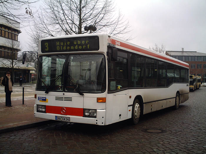 Da die restlichen Fahrzeuge erst im Mai erwartet werden, sind Leihfahrzeuge im Einsatz. Unter Anderem handelt es sich dabei um drei Neoplan N 4021 NF (ex BVG, Berlin, 2505, 2507 und 2513) - oben rechts im Bild der ehemalige Wagen 2505 mit der Zulassung B-NT 8675 - und einen Mercedes-Benz O 405 N2 mit der Zulassung SHA-CW 240 vom Stadtbus Schwäbisch Hall, zu sehen im ersten Foto in dieser Reihe. Als Subunternehmer kommen Rathje mit vier Fahrzeugen (Bild in der Mitte: MAN A20 mit dem Kennzeichen IZ-C 273) und Holsten-Express/Voss (Bild rechts: MAN A20 mit dem Kennzeichen IZ-CK 411) mit zwei Fahrzeugen zum Einsatz.
