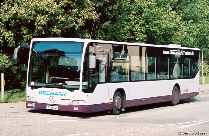 Zudem erhielt Dechant in der 35. Kalenderwoche einen neuen EvoBus MB O 530 Ü (Citaro) in der gewöhnlichen Hauslackierung des Busunternehmens, der unter dem Kennzeichen R-D 648 insbesondere auf den im Rahmen des Regensburger Verkehrsverbundes zu befahrenden Linien zum Einsatz gelangt. Die nachfolgenden Bilder zeigen den neuen Citaro am Regensburger Hauptbahnhof, während sich der S 415 GT-HD in der Nähe der "Papstwiese" am Islinger Feld präsentiert.