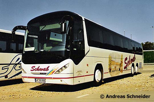 Neu im Fuhrpark der Firma Schwab aus Kröning-Hub ist ein Überlandbus der 13,7-Meter-Klasse. Der Neoplan N 3516/3 ÜL (Trendliner) wurde auf das Kennzeichen LA-RA 466 zugelassen.