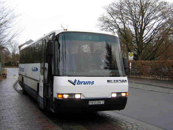 Schon Ende März hat Bruns Reisen aus Varel zwei Neoplan N 316 K (Transliner) (FRI-DN 7 und FRI-DN 32) sowie einen Neoplan N 316 Ü (Transliner) (FRI-DN 52) ausgemustert. Stattdessen wurde ein MAN A 01 gekauft, der zur Zeit noch auf ST-G 350 angemeldet ist. Auf den Bildern sind die drei ausgemusterten Transliner zu sehen.