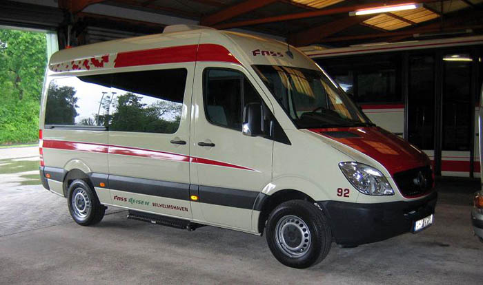 Mit einem neuen Mercedes-Benz Sprinter hat Fass Reisen aus Wilhelmshaven einen Neuzugang zu verbuchen: Das Fahrzeug wurde auf WHV-FR 92 angemeldet und hat dementsprechend die Wagennummer 92 erhalten. Die Aufnahme zeigt das Fahrzeug auf dem Betriebshof des Unternehmens.