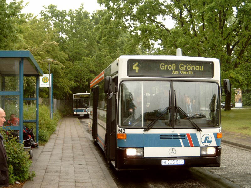 Auf dem Foto ist der Wagen HL-CS 643 (ex SL 643) im Mai 2007 im Rahmen einer Sonderfahrt zu sehen, die anläßlich des Ausscheidens der letzten O 405 beim Stadtverkehr von Nahverkehrsfreunden mit Unterstützung der Firma Berg organisiert wurde. Das Foto entstand an der Haltestellenanlage Wesloer Brücke mit hierher passender Beschilderung als Linie 4.