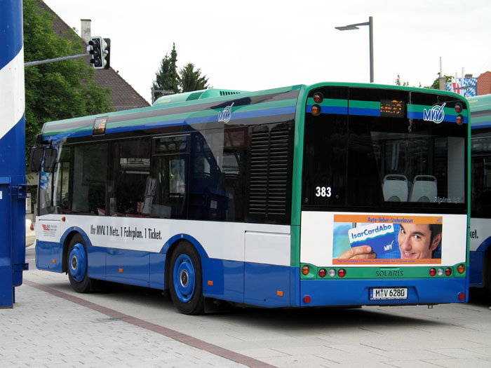 Deutschlandpremiere für die ersten Solaris Alpino: Die ersten drei Busse vom Typ Solaris Alpino haben bereits Anfang August den Betrieb im Stadtverkehr der Universitätsstadt Garching bei München aufgenommen. Die als Wagen 381 bis 383 bezeichneten Midibusse sind in MVV-Lackierung, klimatisiert und verfügen über Klapprampen und elektronische Fahrscheindrucker. Zudem sind diese Fahrzeuge Teil eines Modellversuches, einen Newsticker für die Fahrgäste zur Verfügung zu