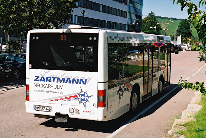 Die E. Zartmann GmbH & Co. hat im August 2007 den Midi-Train-Vorführzug vom Hersteller Göppel übernommen. Der Zug wurde auf die Kennzeichen HN-EZ 160 (Bus; ex A-MG 135) und HN-EZ 1958 (Anhänger; ex A-MG 136) zugelassen. Nach Ende der baden-württembergischen Sommerferien kommt er ab dem 10.09.2007 auf der Neckarsulmer Stadtbuslinie 32 zum Einsatz. Als Gespann werden die Fahrten der Linie 32 um 6:48 Uhr ab Binswanger Straße West, 7:14 Uhr ab Friedhof am Wald und 16:46 Uhr ab Aquatoll gefahren. Der Bus verkehrt solo auch auf der Linie 31.