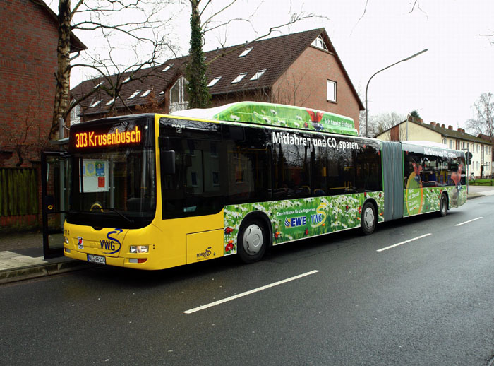 Die Nordbus GmbH begrüßt den 19. Erdgasbus in Oldenburg. Hierbei handelt es sich um einen neu beschafften MAN A23 CNG (Lion's City). Er erhielt bei der Nordbus GmbH die Betriebsnummer 114 und das Kennzeichen OL-NG 114. Das grüne Farbkleid weicht von den älteren, blauen Erdgasbussen ab und weist daraufhin, dass seit Anfang 2008 dem Erdgas ca. 10 Prozent Biogas beigemischt wird.