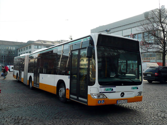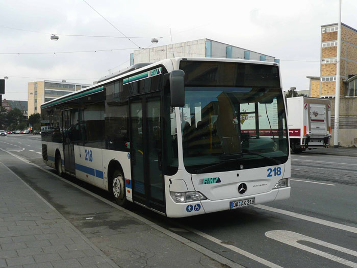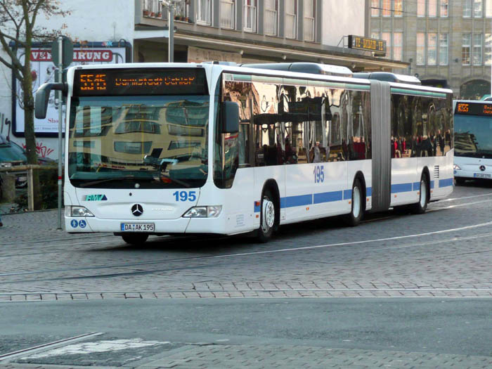 Seit Mitte letzten Jahres hat die HAV Verkehrsbetriebsgesellschaft & Co. KG in Darmstadt zahlreiche Neufahrzeuge von EvoBus MB in Dienst gestellt. Dabei handelt es sich um die EvoBus MB O 530 (Citaro) mit den Wagennummern 208, 209, 211, 218, 221, 224, 229, 231 und 232 sowie die Gelenkbusse O 530 G mit den Nummern 132, 134, 146, 159, 162, 167, 168, 174, 179, 184, 187, 191, 195 und 206.