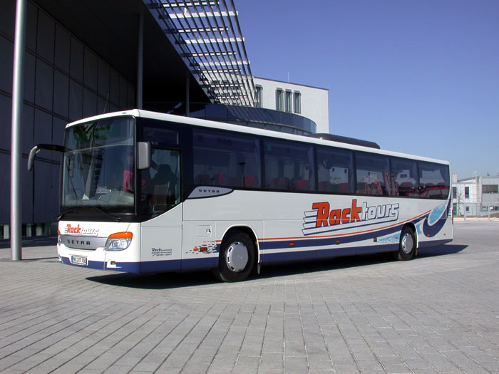 Die Firma Racktours GmbH & Co. KG setzt seit einer Woche leihweise einen gebrauchten EvoBus Setra S 315 NF im Linienverkehr ein, welcher von der Setra-Generalvertretung in Himmelstadt angemietet wird. Das Fahrzeug (Baujahr 2000) ist auf die Firma Racktours zugelassen und trägt das Kennzeichen MKK-NF 315. Der Leihwagen wird im Juni/Juli 2008 wieder zurückgegeben, wenn ein neu bestellter EvoBus Setra S 415 NF ausgeliefert wird.
