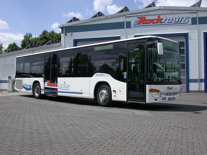 Die Racktours GmbH & Co. KG aus Erlensee bei Hanau konnte am 17.06.2008 ihren dritten EvoBus Setra S 415 NF in Ulm abholen. Das Fahrzeug ist auf MKK-RT 800 zugelassen und erfüllt die Euro 5-Norm. Daher wird der zur Überbrückung leihweise von der Setra-Vertretung überlassene Setra S 315 NF mit dem Kennzeichen MKK-NF 315 Anfang Juli wieder abgegeben. Für den neuen Setra wird zudem im Herbst der EvoBus MB O 530 (Citaro) mit der Zulassung HU-VN 777 die Flotte verlassen.