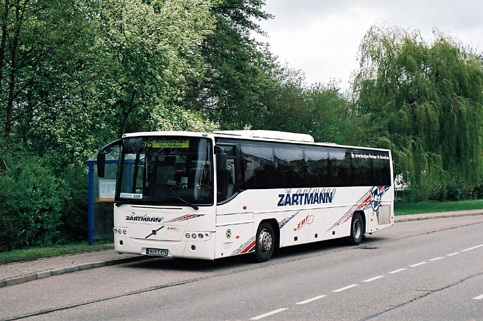 Im Dezember 2008 wurde der Mercedes-Benz O 408 mit der Zulassung HN-EZ 607 verkauft und im Januar 2009 durch einen gebraucht beschafften Volvo 8700 ersetzt. Das Bild zeigt den auf HN-EZ 870 zugelassenen ersten Volvo-Linienbus bei Zartmann am 17.04.2009 an der Haltestelle "Schafgasse" in Neuenstadt am Kocher.