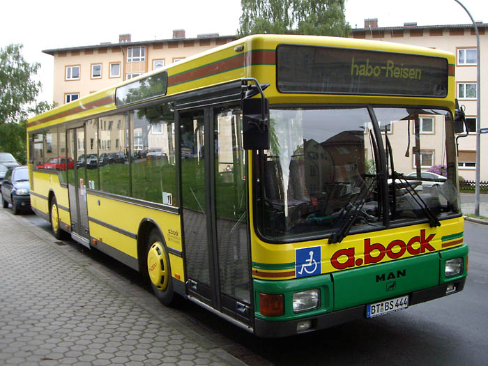 Ergänzend zur Meldung vom 23.05.2009 zeigt das Bild den nun bei Habo Reisen aus Heinersreuth mit dem Kennzeichen BT-BS 444 eingesetzten MAN A10 (NL 202). Zuor war der Wagen bei der Bayreuther Verkehrs- und Bäder GmbH mit der Zulassung BT-ZW 26 im Bestand.