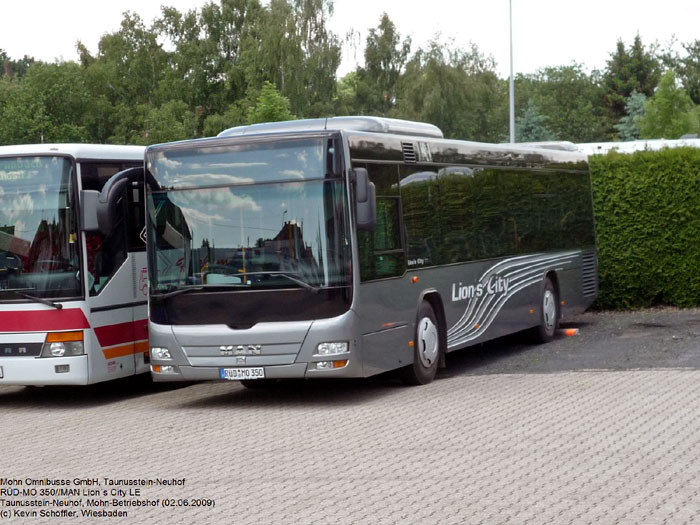 Die Mohn Omnibusse GmbH aus Taunusstein-Neuhof im Rheingau-Taunus-Kreis hat ein Neufahrzeug bekommen. Es handelt sich um einen Low-Entry-Bus MAN A78 (Lion's City), der auf RÜD-MO 350 zugelassen wurde. Das Fahrzeug kommt im Stadtverkehr Taunusstein und auf der Linie 270 (Wehen - Wiesbaden) zum Einsatz. Ob ein Fahrzeug dafür ausgemustert wurde ist nicht bekannt.