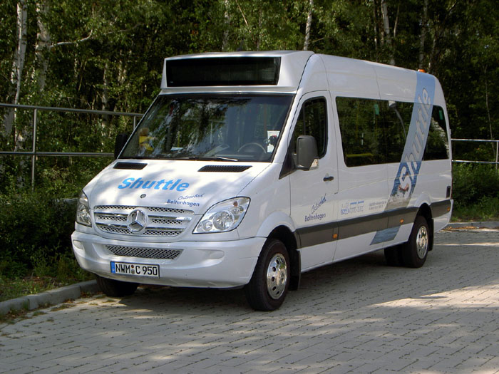 Im Badeort Boltenhagen an der Ostsee gibt es unter dem Namen "Boltenhagen Shuttle" eine Ortslinie, die von Redewisch im Westen über das Zentrum bis zur "Weißen Wiek" fährt. Bedient wird diese Linie mit einem Mercedes-Benz 515 CDi Sprinter City 65, der das amtliche Kennzeichen NWM-C 950 trägt und Firma Beckert aus Boltenhagen gehört. Ursprünglich war er ein Vorführwagen, der mit einem Dortmunder Kennzeichen auf das Mercedes-Minibuswerk in Dortmund zugelassen war. Die aufnahme des Wagens datiert vom 22. Juli und entstand an der Endstation "Weiße Wiek".