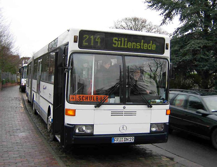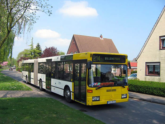 Bereits im März dieses Jahres hat Bruns Reisen aus Varel einen Mercedes-Benz O 405 GN2 erhalten, der vorher bei BremerhavenBus im Stadtverkehr Bremerhaven im Einsatz war, und auf FRI-DN 31 angemeldet. Neues Einsatzgebiet ist der Schulverkehr rund um Jever. Die Aufnahme innen zeigt den Gelenkbus am 23.04.2009 in Schortens-Sillenstede. Dafür weichen musste FRI-DN 19, ein Mercedes-Benz O 405 G ex ASEAG, Aachen, der im äußeren Bild zu sehen ist.