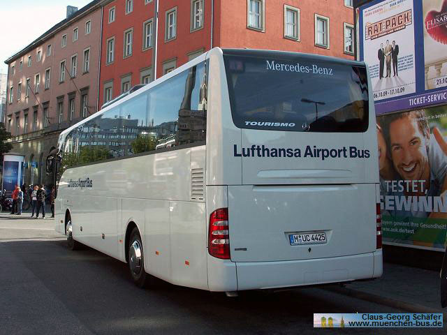 Das Traditionsunternehmen Autobus Oberbayern modernisiert zur Zeit die Airportlinie Flughafen München - Innenstadt München. Hierfür laufen nun drei neue EvoBus MB Tourismo in weiß mit dem blauen Schriftzug "Lufthansa Airport Bus". Sie erhalten aber in den nächsten Monaten noch ein Dekor. Die bisher eingesetzten EvoBus MB Travego RH mit den Kennzeichen M-UC 411 bis 415 werden neutralisiert und verkauft.