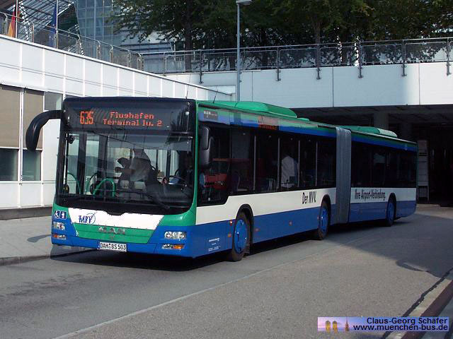 Die Busverkehr Südbayern GmbH aus Karlsfeld hat vier neue viertürige MAN A23-18,75m (Lion's City) im MVV-Design für die Flughafenlinie 635 in Betrieb genommen: DAH-BS 501 bis 504. Sie ersetzen die Fahrzeuge vom Typ Neoplan N 4522 (Centroliner).