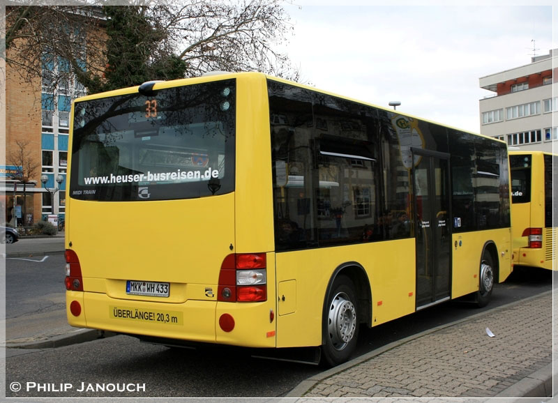 Der gesamte Midi-Train-Buszug bietet Platz für ca. 150 Fahrgäste. Für ein kontrollierteres Einsteigen wurde der Zugwagen vorne mit einer einflügeligen Innenschwenktür gewählt. Wie alle Anhängerzüge ist auch dieser mit einer Videoüberwachungsanlage ausgeführt, um eine bessere Sicherheit im Anhänger zu gewährleisten. Ähnlich wie der im September gelieferte EvoBus MB O 530 K (Citaro) wurde für dieses Fahrzeug eine gelbe Außenlackierung gewählt, da er auf der Gemeinschaftslinie MKK-33 von Heuser, Rack und Stroh eingesetzt wird. Der Zugwagen erhielt das Kennzeichen MKK-EH 433 und der Anhänger MKK-WH 433.