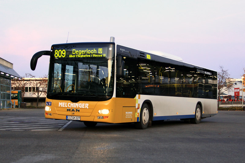 Die Firma Omnibusverkehr Melchinger (Inhaberin Gisela Melchinger) aus Aichtal-Aich hat im November erstmals seit 2006 wieder ein Neufahrzeug in Dienst gestellt. Ein MAN A20 (NÜ 323 Lion's City) mit Motor der EEV-Norm wurde auf das Kennzeichen ES-GM 327 zugelassen. Dank der Sitze auf Podesten und Reihenbestuhlung im Heck mit hochfesten Sitzen erreicht das Fahrzeug trotz großer Mehrzweckfläche 42 Sitzplätze. Ansonsten ist der A20 allerdings mit senkrechten Haltestangen und zwei doppeltbreiten Innenschwenktüren als Stadtbus ausgestattet. Die weitere Ausstattung mit Klimaanlage, Fahrgastinformation über hochauflösende FlipDot-Matrixanzeigen inklusive Zielanzeige am Heck und einen Doppelbildschirm im Fahrgastraum sowie Videoüberwachung mit Rückfahrkamera entspricht dem 2006 beschafften Niederflurbus.