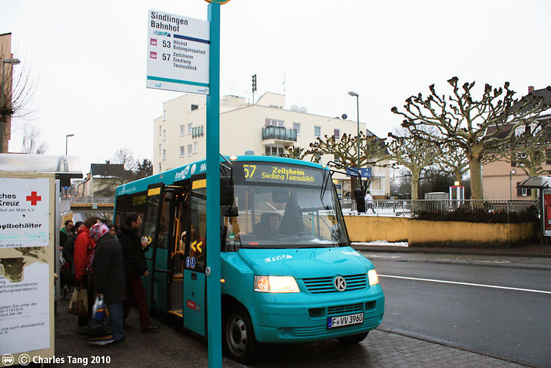 In Frankfurt-Zeilsheim wurde mit Inbetriebnahme des Linienbündel B (Linien 50, 53, 54, 55, 57, 58 und 59) eine neue Quartiersbuslinie (Linie 57) in Betrieb genommen. Aufgrund der örtlichen Gegebenheiten war die im Nahverkehrsplan als Erschließungslücke vermerkte "Siedlung Taunusblick" mit normalen Omnibussen nicht bedienbar. Hierzu fanden bereits vor der eigentlichen Ausschreibung mit traffiQ - der lokalen Nahverkehrsgesellschaft Frankfurt am Main mbH - sowie dem Ortsbeirat Probefahrten mit einem Kutsenits City IV (Kleinbus) von Alpina (Veolia Verkehr Rhein-Main GmbH) statt.
