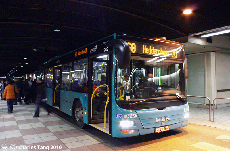 Der Wagen wurde auf F-VV 3962 mit der Wagennummer 962 zugelassen. Dieses Exemplar ist im Frankfurter Stadtbusverkehr ein Einzelstück zwischen den Volvo 7700, den EvoBus MB Citaro und den Solaris Urbino. Das Foto zeigt den Wagen im Tunnelbusbahnhof des Nordwestzentrums.
