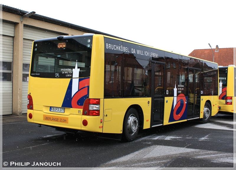 Das Fahrzeug ist genau baugleich mit dem der Firma Racktours. Als Zugfahrzeug kommt ein MAN A21 (NL 320 Lion’s City) mit EEV-Motor und als Anhänger der Göppel G11 zum Einsatz. Das komplette Gespann ist voll niederflurig ohne Podeste ausgeführt und verfügt wie alle Buszüge über eine Videoüberwachungsanlage. Der Zugwagen wurde auf das Kennzeichen FB-FS 137 und der Anhänger auf das Kennzeichen FB-FS 177 zugelassen. Seit dem 17.02.2010 verkehrt der Anhängerzug auf der Linie MKK-33.