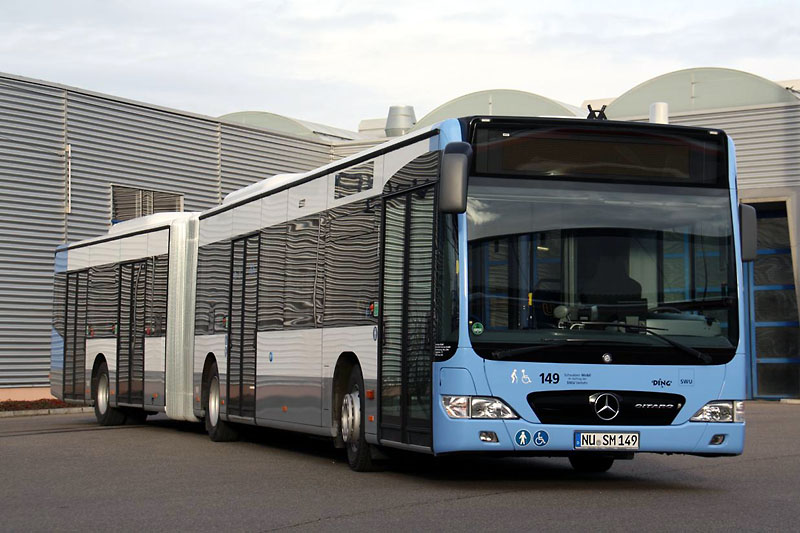 Die Busbeschaffung des Jahres 2010 der Schwaben Mobil Nahverkehr Service GmbH aus Bobingen für den Auftragsverkehr auf den Linien der SWU Nahverkehr Ulm/Neu-Ulm GmbH besteht aus sieben Gelenkbussen vom Typ EvoBus MB O 530 G (Citaro). Zum ersten Mal handelt es sich dabei um viertürige Busse, die insbesondere auf den nachfragestarken Linien zur Wissenschaftsstadt/Universität zum Einsatz kommen sollen. Die neuen Fahrzeuge wurden als Wagen 143 bis 149 eingereiht und erhielten die entsprechenden Zulassungen NU-SM 143 bis 149. Die linke Aufnahme zeigt den Wagen 149.