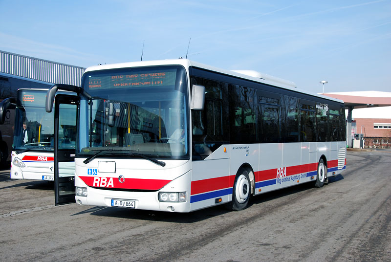 Am 10.02.2011 übernahm die Regional Bus Augsburg GmbH (RBA) drei Irisbus Crossway LE und zwei Irisbus-Heuliez GX 427 vom Hersteller in ihren Wagenpark. Die drei 12 Meter langen Low-Entry-Busse vom Typ Crossway LE tragen die amtlichen Kennzeichen A-RV 863 bis 865; sie stammen aus dem tschechischen Werk von Irisbus, dem zurzeit größten und modernsten Werk des Unternehmens. Die beiden 18 Meter langen Gelenkwagen vom Typ GX 427 tragen die Kennzeichen A-RV 866 und 867; sie sind im Werk der Irisbus-Tochter Heuliez im französischen Rorthais gebaut worden und sind die ersten Wagen dieses Typs in Deutschland.