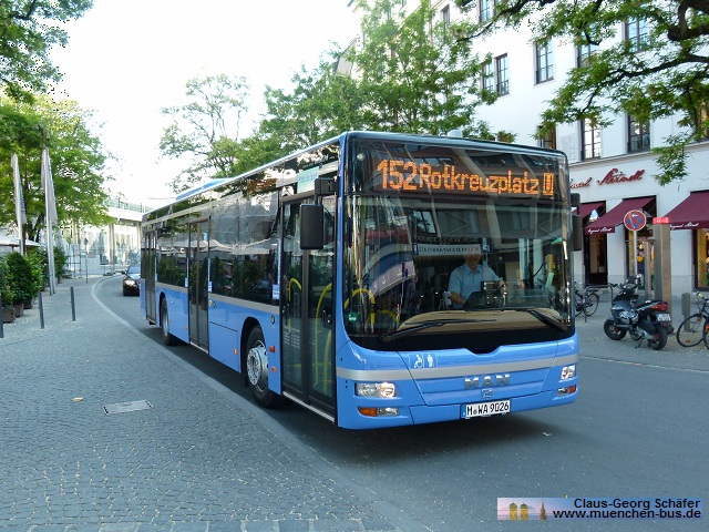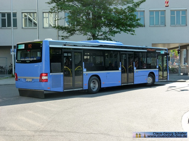 Seit dem 21.05.2011 sind die sieben neuen MAN A21 (Lion's City) Busservice Watzinger GmbH & Co. KG aus München in Betrieb gegangen, die in Ausstattung und Design der Münchner Verkehrsgesellschaft mbH (MVG) gehalten sind. Auf der Linie 152 Ostbahnhof - Rotkreuzplatz wurden gleich fünf Fahrzeuge eingesetzt, von denen jene mit den Kennzeichen M-WA 9026 und 9031 in den Bildern zu sehen sind.