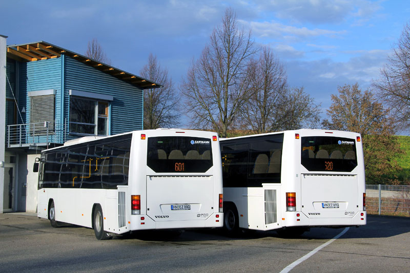 Im Oktober 2011 hat die E. Zartmann GmbH & Co. KG aus Neckarsulm zwei Volvo 8700 LE für den Einsatz im Regionalverkehr im Auftrag der Regional Bus Stuttgart GmbH und der WEG in Dienst gestellt und auf HN-EZ 880 und HN-EZ 890 zugelassen. Ersterer besitzt ein Automatikgetriebe von Voith, der zweite von ZF. Ansonsten sind beide Fahrzeuge baugleich. Verkauft wurden die beiden ältesten EvoBus MB O 530 (Citaro) mit den Kennzeichen HN-EZ 110 und 560 sowie der Volvo 9900 mit der Zulassung HN-EZ 871.